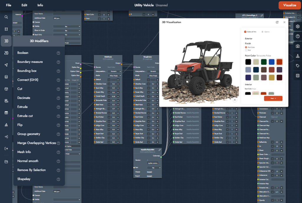 Showcase your digital product twins with realism and precision through Twikit's WebGL and Unreal Engine rendering integrations.