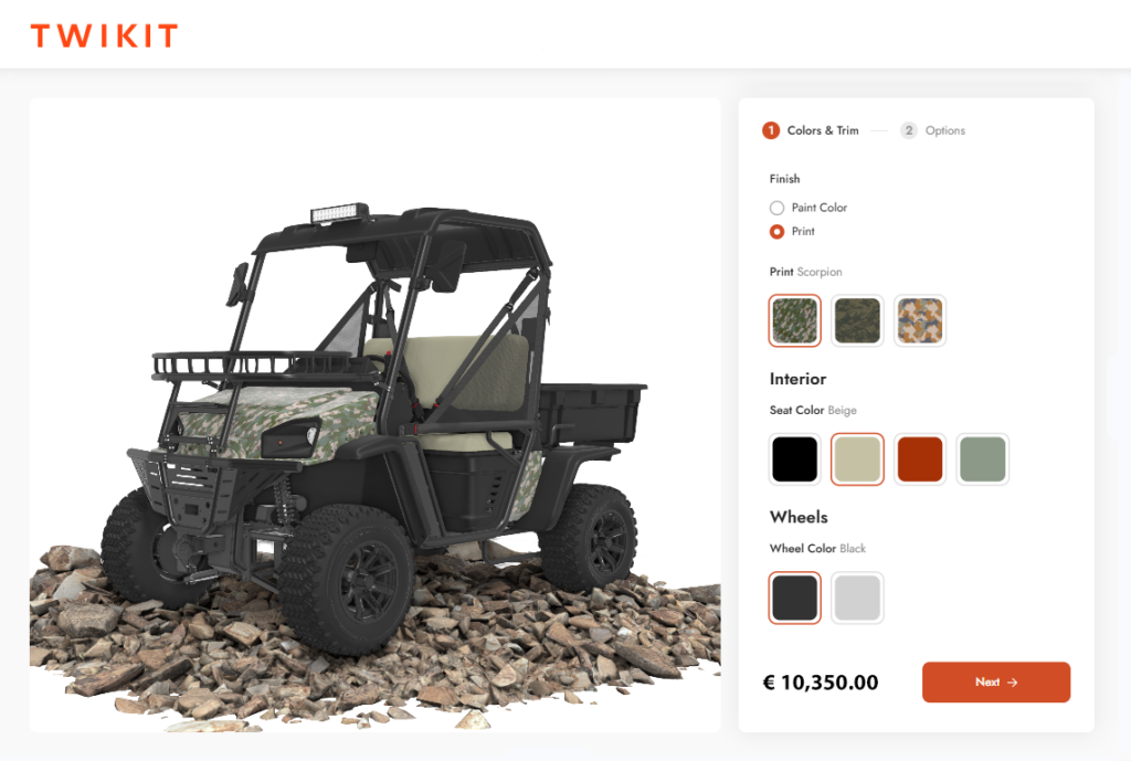 Twikit empowers brands to launch advanced and immersive online 3D product configurator workflows in record-time. Accelerate the set-up, launch and implementation of your configurators and easily update and maintain with new product rules, options and features through Twikit’s low-code software.